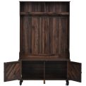 Upgrade your entryway with our Hall Tree, designed to optimize functionality and effortlessly organize your belongings. Featuring two open storage shelves, four sturdy metal double hooks, a convenient shoe bench, and ample shoe storage space at the bottom, our hall tree maximizes storage capacity while minimizing clutter in your home. Say goodbye to entryway chaos and make the most of your space with our versatile and efficient solution.